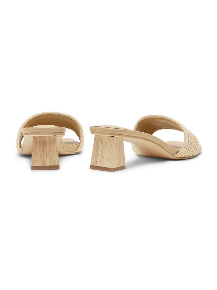 Our IBIZA heels feature a woven upper, a tapered square toe and an inset timber low block heel.