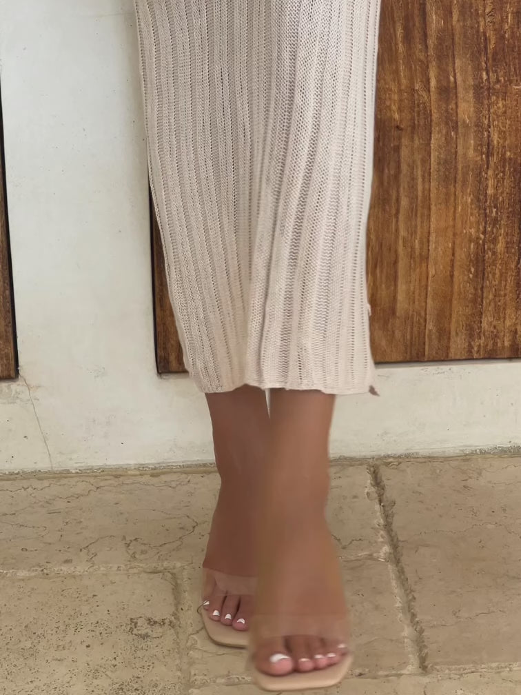 SADIE nude clear kitten heels feature a super soft transparent straps, extra padded sole, square toe and a mid heel stiletto.